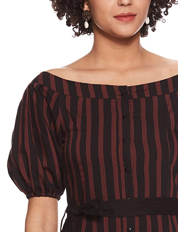 Product Details Material CompositionViscose StyleSkater PatternStriped Neck StyleBoat Neck Country of OriginIndia About this Item Color Name: Black Material: Rayon Machine wash Midi Stripe