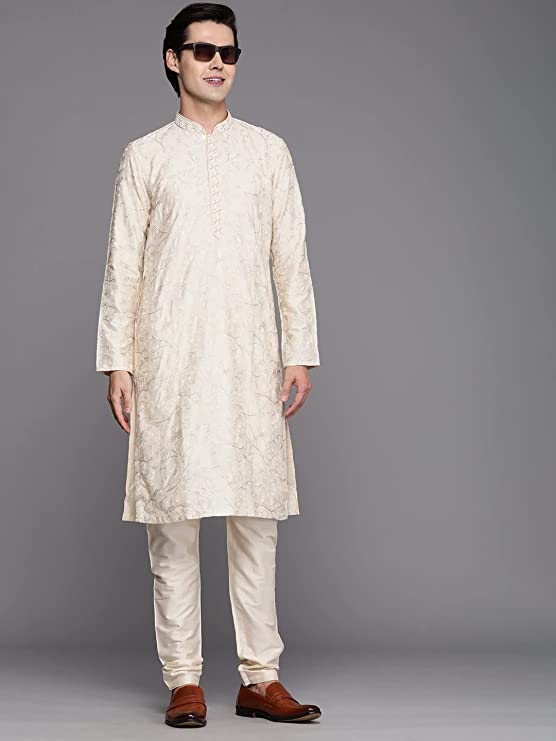 Product Details Material CompositionBlended Viscose Care InstructionsDry Clean Only Length32 StyleModern Country of OriginIndia About this Item Package Contain: Kurta Set Stylish Kurta set to bring out your best style game in functions. Charming and classic outfit. Highlighted with velvet collar and fancy buttons. Fashion: Your amazing fashion sense inspires everyone. Carry forward this tradition and flaunt in your best look teaming in this ethinic wear on any occasion Brand: Manyavar is your one stop destination for making any given day an occasion, we understand that your clothes are an extension of your personality. The entire garment is made by a single artisan instead of chain-system production. We recommend to use this item on your special occasion Everyone uses partywear on numerous occasions, give this ethinic outfit as a thoughtful gift for your loved one s next birthday, anniversary, wedding or any occasion. This is why it makes the perfect present for your dad, husband, son, or friend.